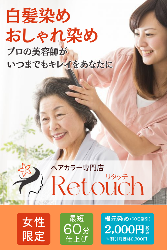 白髪染め・おしゃれ染め専門店リタッチは、福井の女性にときめく心を届けたいと願うカラリスト達(国家資格保有美容師)が集う美容室です。